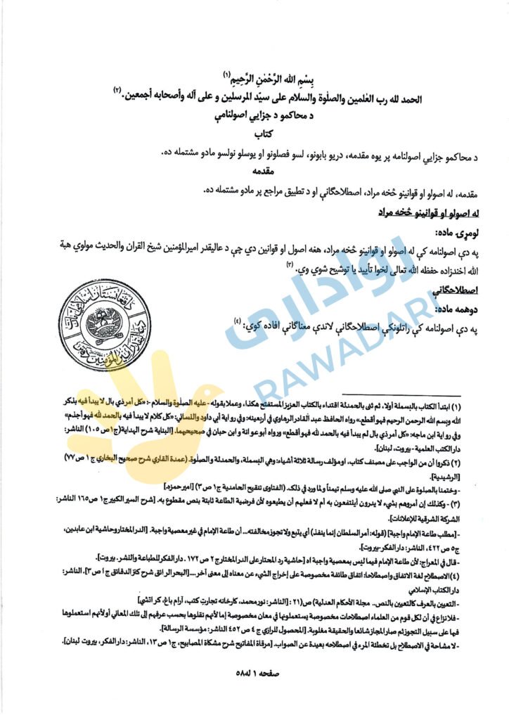 رواداری به تازگی به نسخه ای از «اصول نامه جزایی محاکم طالبان» دست یافته است که نشان می دهد این سند پس از امضا توسط ملا هبت الله، رهبر این گروه، برای تطبیق در نهادهای قضایی، به ولایت ها ارسال شده است. اصول نامه مذکور در سه باب، ۱۰ فصل و ۱۱۹ ماده تدوین گردیده است.